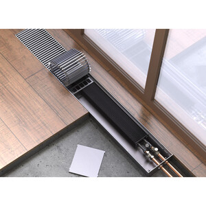Бриз— это встраиваемые в пол конвекторы. Рекомендуются для отопления помещений, имеющих высокие окна или стеклянные стены, где традиционные отопительные приборы применить затруднительно без нарушения дизайнерских решений, а также для дополнительного отопления при смешанной установке с другими приборами. Короб изготавливается из листовой стали. Теплообменник и короб имеют защитное эпоксидное покрытие графитово-серого цвета (RAL 7024), что делает его практически «невидимым» под декоративной решеткой. Медно-алюминиевым теплообменником обеспечивают быстрый и эффективный обогрев помещения, создавая перед большими окнами и стеклянными стенами тепловые завесы от потоков холодного воздуха. Конвекторы встраиваются в структуру пола, оставляя видимой лишь декоративную решетку из анодированного алюминиевого U-образного профиля. Ширина просвета между планками 12 мм, ширина планки 5 мм, втулки черные. Присоединительная резьба – внутренняя G 1/2". Гарантия 5 лет, срок службы – 25 лет. Рабочее давление – до 15 атм. Испытательное давление – не менее 22,5 атм.