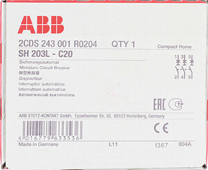 Автоматический выключатель модульный ABB SH203L 3P 20А тип C 4,5 кА 400 В (2CDS243001R0204)
