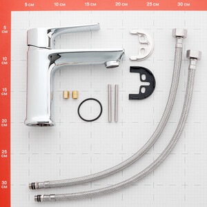 смеситель, пластиковый аэратор с функцией легкой очистки, керамический картридж 35 мм, гибкая подводка 40 см – 2 шт., присоединительная группа для горизонтального крепления.