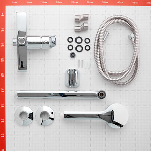 смеситель, пластиковый аэратор, керамический картридж, переключатель с керамическими пластинами, аксессуары в комплекте (шланг 1,5 м, настенное крепление, 1-функциональная лейка), присоединительная группа для вертикального крепления.