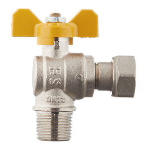 Кран шаровой газовый Tiemme 1/2 ВР(г) х 1/2 НР(ш) бабочка угловой
