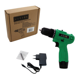 Дрель аккумуляторная Zitrek Green 12-Li-ion – 1 шт., Литий-ионный аккумулятор 1,5 Ач – 1 шт., Двухсторонняя бита – 1 шт., Зарядное устройство – 1 шт., Руководство по эксплуатации – 1 шт.