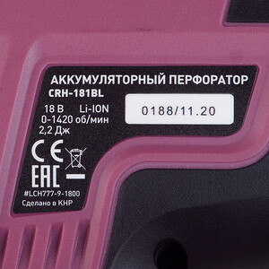Набор аккумуляторного инструмента КМ АТОМ – дрель-шуруповерт (CD-181) и перфоратор (CRH-181BL). Эти инструменты входят в состав аккумуляторной платформы КМ АТОМ. Все инструменты и садовая техника данной серии работают от универсальных аккумуляторов КМ АТОМ. Аккумуляторная дрель-шуруповерт CD-181 предназначена для закручивания/выкручивания резьбовых соединений разных типов (винтов, болтов, шурупов), а также сверления в металлических, деревянных, пластмассовых и подобных материалах. Тип двигателя – Щеточный Максимальный крутящий момент – 40 Нм Установка крутящего момента – 25+1 2 скорости – 0-400 / 0-1500 об/мин Диапазон зажима патрона – 1,5-13 мм Быстрозажимной металлический патрон с автоматическим замком Блокировка шпинделя при смене оснастки Защита двигателя от перегрузки Прорезиненное покрытие рукояти Подсветка рабочей зоны Тормоз двигателя Крюк для ремня Реверс Перфоратор CRH-181BL предназначен для сверления отверстий в древесине, металле и бетоне, а также для выполнения нетяжелых долбежных работ. Тип двигателя – Бесщеточный Частота вращения на холостом ходу – 0-1420 об/мин Число ударов – 0-4500 уд/мин Макс. энергия единичного удара – 2,2 Дж Тип патрона – SDS-plus Режим работы – сверление, сверление с ударом, долбление Диаметр сверления отверстий – 13-28 мм Возможность изменения положения оснастки в патроне Защита от заклинивания и перегрузки двигателя Прорезиненное покрытие рукоятки Ограничитель глубины бурения Подсветка рабочей зоны Реверс Аккумуляторная батарея КМ АТОМ BLI-181/4.1 Емкость батареи – 4 А*ч Тип батареи – Li-Ion Индикатор заряда батареи на корпусе Время зарядки – 110 минут Зарядное устройство КМ АТОМ BC-18/1 Питание – 230 В, 50 Гц Ток зарядки – 18V/2.4A Индикатор заряда батареи на корпусе