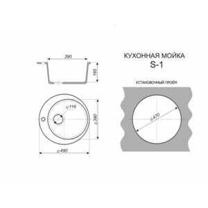 Мойка для кухни Simgran S-1 d490х190 мм врезная круглая без крыла искусственный камень серый матовый в Москве
