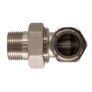 Соединитель с накидной гайкой угловой предназначается для соединения частей трубопровода. Соединение осуществляется с помощью накидной гайки и тип такого соединения называют «американка». Детали соединителя изготавливаются из латуни и имеют никелированное покрытие. В конструкции соединителя используется уплотнительное кольцо, изготовленное из резины EPDM.