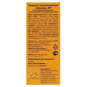 Антисептическое средство «Агройод» (йодополимерный комплекс с массовой долей активного йода 10%) предназначено для дезинфекции теплиц, садовых инструментов, помещений (погребов, мест содержания животных), оборудования и транспортных средств.