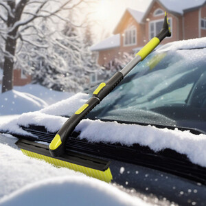 Телескопическая щетка для снега с силиконовой щетиной. Силиконовая щетина не оставляет царапин и не позволяет забиваться снегу. Можно использовать как водосгон.