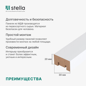 Декоративная рейка МДФ 30х20х2700 мм белый Stella в Москве