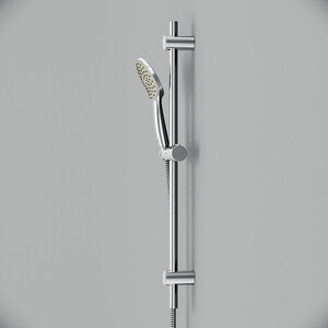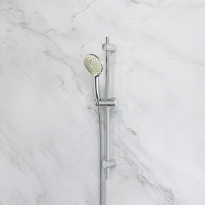 Душевой гарнитур AM.PM имеет трендовый дизайн и уникальный рисунок форсунок, который обеспечивает равномерное распределение воды при любом напоре. Продуманные детали для удобства использования – шарнирное соединение, защищающее душевой шланг от перекручивания, регулируемый в трех плоскостях держатель ручного душа и функция Rub&Clean для легкой очистки душевых форсунок. Гарнитур имеет один режим ручного душа.