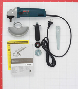 шлифмашина, защитный кожух, рожковый ключ, зажимная гайка, дополнительная рукоятка.