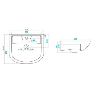 Тумба в собранном виде, ручки хром – 2 шт., полка ЛДСП, полкодержатель металл – 4 шт., ножки хром – 2 шт., ножки пластик – 2 шт., подвес к стене, раковина.
