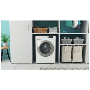 Стиральная машина вмещает 8 кг белья при стирке. Имеет 16 встроенных программ, оснащена функциями: отложенный старт, выбор температуры стирки, выбор скорости отжима, пятна, быстрая стирка. Скорость отжима составляет 1200 об/мин. Цикл стирки Push & Go предлагает уникальный способ запуска стирки, который идеально подходит для х/б и синтетических вещей, используется температура стирки 30°С и максимальная скорость отжима 1000 оборотов в минуту. На последнем этапе цикла белье будет обрабатываться паром; этот процесс вызывает размягчение волокон, поэтому глажка будет выполняться легче и быстрее.