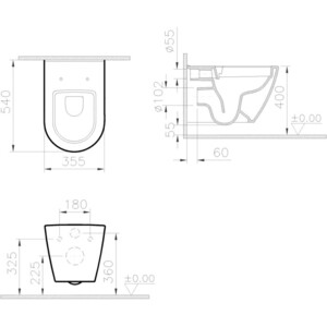 Инсталляция, монтажный комплект, смывной бачок, двухрежимная смывная панель, безободковый подвесной унитаз, дюропластовое сиденье микролифт, инструкция.