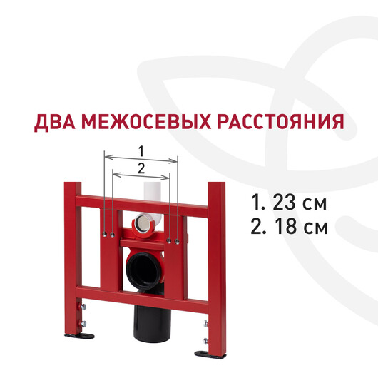 - Два межосевых расстояния 18 и 23 см – подходит для всех подвесных унитазов.