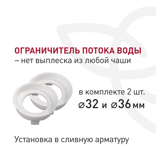- Ограничитель потока воды (дроссель) позволяет настроить арматуру для любой чаши унитаза и избежать выплеска воды при смыве.