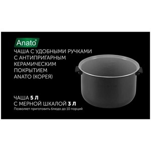 Удобная в использовании мультиварка идеально впишется в интерьер любой современной кухни. С ее помощью можно готовить вкусную и здоровую пищу. Данная модель, мощностью 860 Вт и вместимостью 5 л , оснащена электронной панелью с сенсорным управлением, трехцветным LCD-дисплеем на русском языке и 16 автоматическими программами приготовления + функция "Мультиповар". В мультиварке используется технология 3D-нагрева, которая обеспечивает равномерный нагрев приготавливаемой пищи со всех сторон, и антибактериальное керамическое покрытие чаши для приготовление здоровой пищи. На чаше имеются удобные ручки, которые не нагреваются. Мультиварка позволяет четко контролировать процесс приготовления различных блюд благодаря таймеру отсрочки до 24 часов, который позволит вам приготовить еду к определенному времени. Эта модель способна поддерживать температуру до 24 часа. Помимо этого в ней предусмотрена герметичная чаша, сохраняющая полезные элементы в продуктах.Чашу можно мыть в посудомоечной машине.