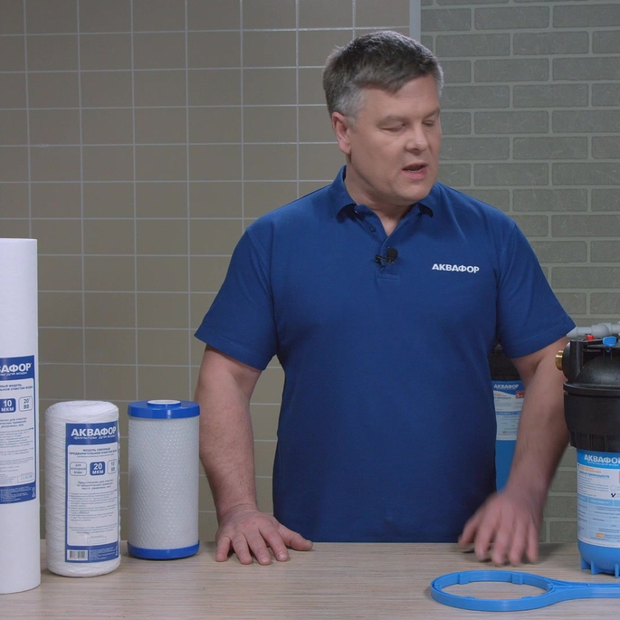 Предназначен для предварительной очистки холодной воды от механических примесей (песка, ржавчины и т.п.). В зависимости от типа используемого фильтрующего элемента, предфильтр очищает воду от примесей разного размера. Использование предфильтра облегчает работу фильтра для питьевой воды, а также защищает бытовую технику (стиральные и посудомоечные машины, водонагреватели) от поломок. Для замены модулей необходим ключ.