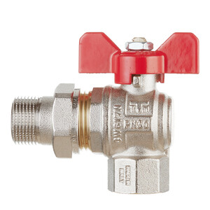 Кран шаровой латунный Tiemme 3/4 ВР(г) х 3/4 НР(ш) бабочка с полусгоном угловой