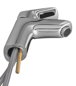 Предназначен для смешивания холодной и горячей воды, поступающей из централизованной или местной системы водоснабжения. Имеет керамический картридж диаметром 35 мм, аэратор. Смеситель оснащен донным клапаном, который служит для запирания донного отверстия в раковине.