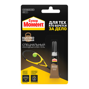 Однокомпонентный цианакрилатный клей. Предназначен для склеивания в различном сочетании резины, металлов, дерева, фарфора, керамики, кожи, пробки, тканей, картона и бумаги и различный пластмасс. HЕ пригоден для склеивания посуды, контактирующей с пищей и для склеивания тефлона, полиэтилена, полипропилена, стекла, глазированный поверхностей и силиконовой резины, очень мягкой кожи.