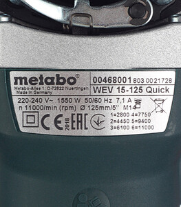 Шлифмашина угловая электрическая Metabo WEV 15-125 Quick 1550 Вт d125 мм (600468000)