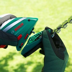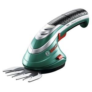 Предназначены для подравнивания кустарника или небольшой живой изгороди, придания формы туям и другим топиарным растениям, стрижки травы вдоль бордюров, возле клумб и на альпийских горках, где трудно работать триммером. Аккумуляторные ножницы Bosch Isio 3 — это отличный инструмент для сада. За счет компактных размеров, инструмент позволяет работать там, куда другие кусторезы не доберутся. Ножницы работают на литиево-ионном аккумуляторе, который не имеет эффекта памяти и саморазряда. Оборудованы системой SDS для быстрой замены оснастки. Прорезиненная рукоятка снижает вибрацию, а эргономичные размеры и малый вес увеличивают комфорт при длительной работе. Светодиодный дисплей показывает, на сколько времени хватит оставшегося заряда аккумулятора. Благодаря антиблокировочной системе , предотвращающей застревание более толстых веток, ножницы работают без остановок и стрижка выполняется быстрее и легче. Ножницы для травы оснащены швейцарскими ножами шириной 80 мм, а кусторез – ножами длиной 120 мм.