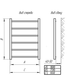 500 – межосевое расстояние в мм, 800 – высота полотенцесушителя в мм.