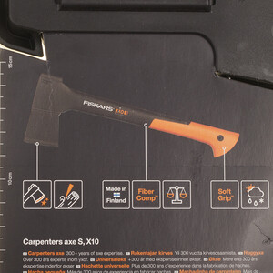 Передовой дизайн в сочетании с формой лезвия, современными материалами и прочностью делают топоры FISKARS оптимальным решением для самой тяжёлой работы. Среди большого ассортимента от универсальных топоров меньших размеров до самых больших топоров вы можете выбрать подходящий инструмент для заготовки веток или колки дров. Универсальные топоры Fiskars предназначены для работ по дереву, столярных работ, рубки, резки и лесозаготовки. Минималистичный дизайн, отточенная функциональность и выверенный размер – вы легко выберете подходящий топор именно для вашей задачи. Тонкое и широкое лезвие универсальных топоров обеспечивает аккуратный, легко наносимый надрез в свежей древесине. Универсальный топор Х10 подходит для плотницких и столярных работ. Отличный инструмент для любых задач во дворе и небольших строительных проектов по всему дому. Отшлифованное лезвие с двойной степенью закалки обеспечивает максимальную прочность. Антифрикционное покрытие защищает лезвие от коррозии. Лезвие надежно зафиксировано в топорище и не сорвется. Оптимальный баланс между лезвием и топорищем для безопасной, удобной и эффективной работы. Легкое, прочное и износоустойчивое топорище из материала FiberComp™. Амортизирующее структурное покрытие SoftGrip™ обеспечивает удобный захват. Крючкообразная форма рукоятки предотвращает выскальзывание инструмента. Топор снабжен практичным пластиковым чехлом для удобства хранения и переноски. Топор произведен в Финляндии. Гарантия 25 лет при регистрации на сайте www.fiskars.ru.
