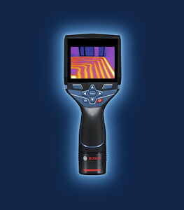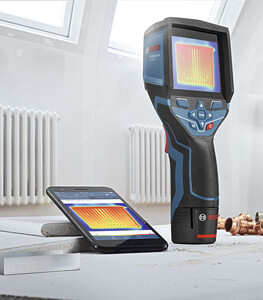 простое протоколирование и быстрый обмен данными посредством приложения Bosch Measuring Master; технология наложения изображений совмещает тепловое и реальное изображения, что упрощает локализацию процесса измерения; гибкая батарейная система позволяет применять литий-ионный аккумулятор 12 В или обычные щелочные элементы питания (адаптер для батарей в комплект поставки не входит).