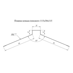Конек для металлочерепицы 115х30х115 мм 2 м плоский с пазом графитово-серый RAL 7024 матовый satin matt
