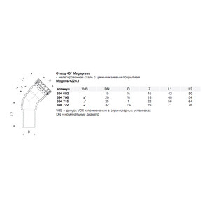 Угол-вставка Viega Megapress SC-Contur (694722) 45° 1 1/4" DN32 пресс нелегированная оцинкованная сталь