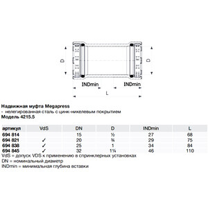 Муфта Viega Megapress SC-Contur (694821) 3/4" DN20 пресс надвижная нелегированная оцинкованная сталь