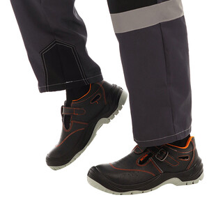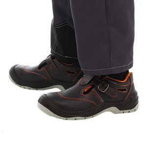 Сандалии серии «Мистраль», изготовлены методом прямого литья. Обеспечивают высокую защиту от механических воздействий (от ударов в носочной части 200 Дж). Материал верха обуви "Мистраль" термоустойчивая водоотталкивающая кожа толщиной 1,8 – 2,0 мм. Подошва – двухслойная, с ходовым слоем из износостойкого термополиуретана, с улучшенным сопротивлением к скольжению, стойкостью к деформациям и истиранию. Подойдет для использования в строительстве, ЖКХ, нефтегазовой, горнодобывающей, химической промышленности, агропромышленном комплексе, металлургии и многих других.