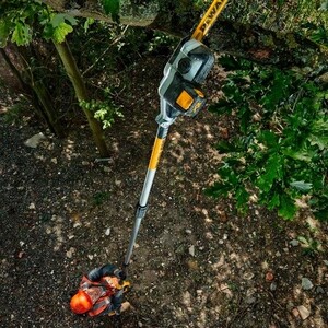 Профессиональный (может работать в режиме повышенной нагрузки и без остановки продолжительное время) аккумуляторный цепной высоторез обеспечивает обрезку веток диаметром до 20 см на высоте до 4,5 метра. Разъединяемая штанга с центральной вставкой длинной от 2-х до 3-х метров обеспечивает досягаемость до 4,5 метров.Легкий и работающий от аккумулятора, он удобен в обращении и обеспечивает беспроводное удобство. Этот высоторез поставляется без аккумулятора и зарядного устройства, но совместим со всеми аккумуляторами платформ FLEXVOLT 54 Вольта и XR 18 Вольт. Мотор-привод идентичен мотору – приводу высотного кустореза DCMPH566N-XJ и совместим с ним по насадкам.
