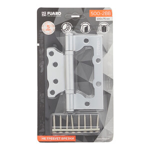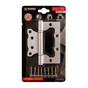 Универсальная дверная петля без врезки Fuaro 500-2BB/BL изготовлена из стали. Предназначена для установки на деревянные двери, подходит для дверей правого и левого открывания. Не требует врезки. Гальваническое покрытие прошло тест на устойчивость к коррозии в соляном тумане – более 96 часов, что соответствует высшему 4 классу стойкости покрытия. Края петель прошли дополнительную полировку. В петле 500-2BB/BL установлены два внутренних подшипника и стальной стержень, что обеспечивает 1 млн циклов открывания/закрывания. Благодаря двум опорным подшипникам, петля устойчива к проседанию. Максимальная нагрузка на 2 петли 35 кг, на 3 петли 45 кг. Размер петли: 100x2,5. Саморезы в комплекте.