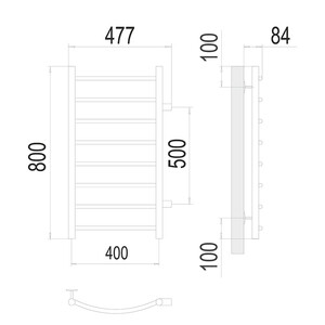 Полотенцесушитель – 1 шт, телескопическое крепление – 2 шт., кран маевского – 1 шт., заглушка – 1 шт., паспорт.