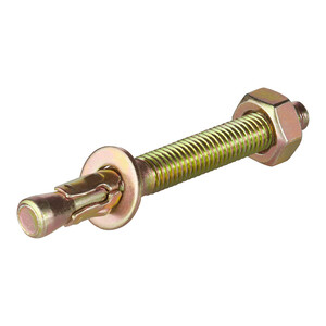 Предназначен для крепления различных конструкций – отбойников, лифтов и подъёмников, колонн и опор, фахверков, элементов фасадных конструкций и прочих элементов к основанию из бетона, природного камня или полнотелого кирпича. Желтопассивированное покрытие анкера, при котором совмещается оцинковка с хроматированием, обеспечивает защиту от коррозии.