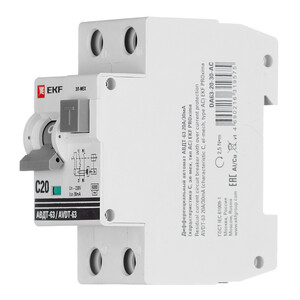 Автомат дифференциальный EKF PROxima АВДТ-63 20А 1P+N тип AC 30 мА 6 кА (DA63-20-30-AC) в Москве