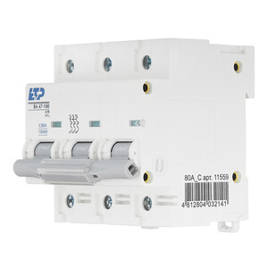 Автоматический выключатель модульный ETP ВА 47-63 3P 80А тип C 4,5 кА 400 В (11559)