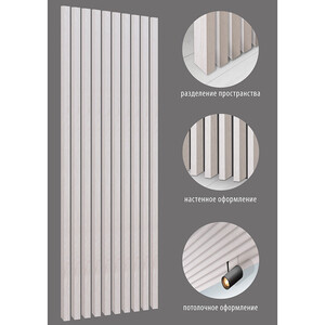 Интерьерная рейка изготовлена из высококачественно МДФ, покрыта износостойкой пленкой. Применяется для создания реечных потолков, реечных перегородок, реечных стен в интерьерах, для зонирования и в декоративных целях. Простой монтаж позволяет устанавливать рейку на монтажную планку ПВХ (приобретается отдельно) либо приклеивать с помощью монтажного клея.