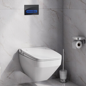 Экстраординарная комбинация премиальных функций – унитаз, отмеченный премиями в области дизайна, теперь с ультратонкой электронной крышкой-биде. Электронная крышка-биде оснащена технологией TouchReel, позволяющей плавным поворотом настраивать напор воды и менять положение форсунки. Вы также можете изменять настройки с помощью пульта управления. FlashClean — новое поколение безободковых унитазов без использования пластика: 100 % гигиеничности, 0% брызг.