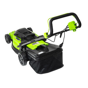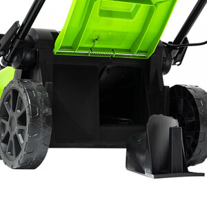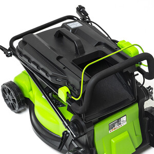 Газонокосилка электрическая Greenworks модель LM2000 – топовая модель в линейке техники Greenworks 230V. Оснащена двигателем мощностью 2000 Вт, ширина скашивания – 43 см, сопоставима по производительности с бензиновыми моделями. Для предотвращения сколов и трещин от попадания камней, корпус выполнен из специального ударостойкого пластика ABS. Регулировка высоты скашивания (6 уровней от 20 мм до 70 мм). В корпус вмонтирована ручка для удобной переноски газонокосилки. У газонокосилки 2 режима кошения – мульчирование, сбор травы в травосборник. Травосборник объемом на 50 литров. Он оснащен стальным каркасом и складывающимся мешком, поэтому не займет много места в вашем гараже или сарае. Ручка газонокосилки имеет эргономичную форму и складывается, что так же экономит место при хранение газонокосилки. Модель оснащена предохранителем от случайного включения и защитой двигателя от повреждений при попадание лезвия на твердый предмет.