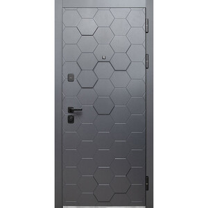 Дизайнерская дверь Luxor 2МДФ 3Д 860 правая предназначена для установки в жилых и общественных зданиях в качестве входной двери внутри помещения. Полотно изготовлено из стали. С внешней стороны облицовано фрезерованной МДФ-панелью толщиной 12 мм., цвет "Графит". С внутренней стороны облицована МДФ-панелью толщиной 10 мм, цвет "Велюр белый софт" с зеркалом в пол.