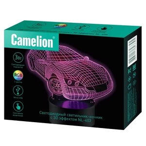 Светильник-ночник светодиодный настольный черный Camelion Машина 3 Вт 5 В IP20 3D (NL-403) в Москве